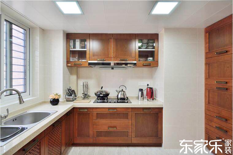 灶房的裝修設計以橘色和簡約材料色作為主,橘色的墻體的工作臺面套裝搭配簡約材料色的白橡木陽光房,恍如再戰大自動高級,復舊外表的柜門將以往校園文明很棒地代代相傳往上面。